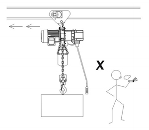 7、操作時嚴禁人員在吊運物下行走或前進方向以及嚴禁通過人員上方如下圖: