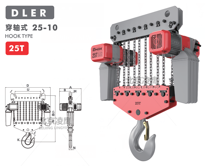 25噸DLER環(huán)鏈電動(dòng)葫蘆穿軸式上鉤與下鉤超低距離設(shè)計(jì),有效提高空間高度。上下起升配KBK滑軌靈活更輕巧。